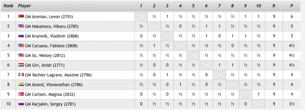Pettynyt Carlsen totesi turnauksen kuuluneen hänen kaikkein huonoimpiin suorituksiinsa. Pikapelikisassa hän osoitti vielä ylivoimaisuutensa, mutta varsinaisessa turnauksessa mikään ei oikein ottanut sujuakseen. Nähtäväksi jää, miten maailmanmestari kokoaa itsensä seuraavaan koitokseen, joka odottaa jo ensi viikolla Pariisissa ja Belgian Leuvenissa Grand Chess Tour-nimisenä.