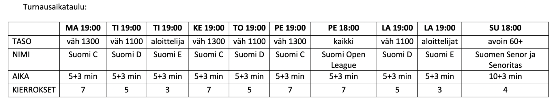 • Kilpailumääräykset