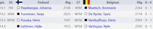 Joukkue EM naiset 5.k. tulokset