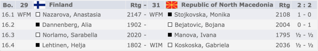 Naisten ryhmän pelit tietokonearvioin varustettuna löytyvät mm. osoitteista https://www.chessbomb.com/arena/2019-european-womens-team-championshipja https://chess24.com/en/watch/live-tournaments/european-womens-team-championship-2019/7/16/2.
