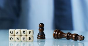 Slow motion macro of the phrase ”Game over” made of the wooden l