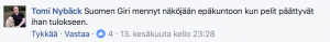 Päivän kihnutus nähtiin Mika Karttusen ja Miikka Mäki-Uuron pelissä. 27 siirron jälkeen suurin osa nappuloista oli vaihtunut, jonka jälkeen raskaat upseerit tuntuivat siirtyilevän poteroissa turvallisemmin kuin tavalliset tallaajat jalkakäytävällä. Jostain ihmeestä Karttunen kuitenkin kaivoi esiin panssarivaunuvaihteen ja hautasi Mäki-Uuron monarkin kuopan pohjalle. Miikan tasapelisarja ei ole turnauksessa pitänyt, mikä sai suurmestari Tomi Nybäckin kommentoimaan Facebookissa toisen kierroksen jälkeen: ”Suomen Giri mennyt näköjään epäkuntoon, kun pelit päättyvät ihan tulokseen.”