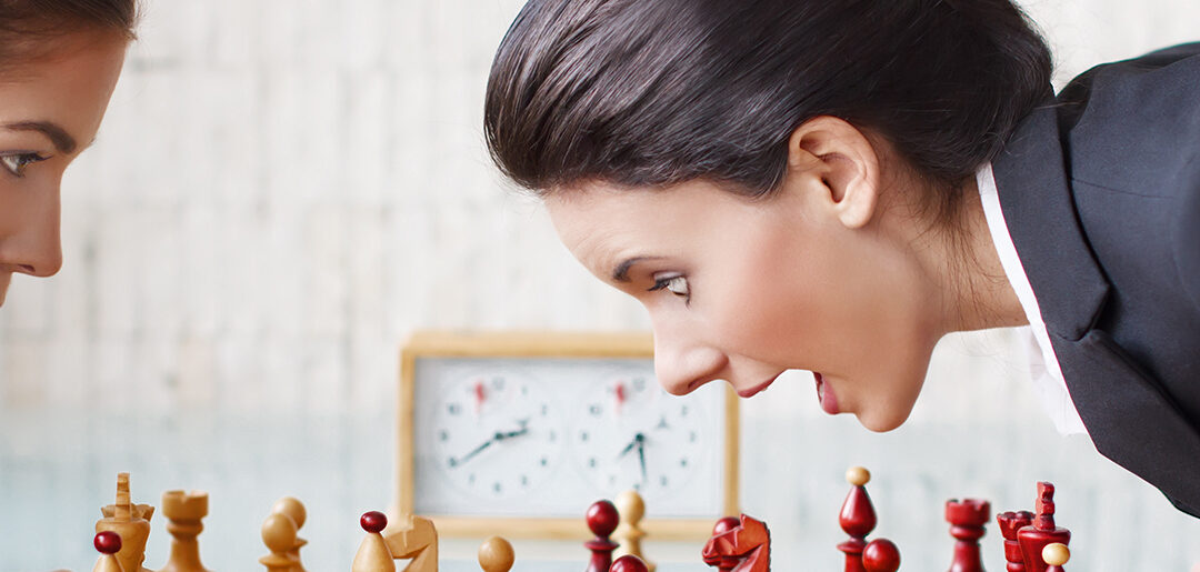 Young women playing chess, tactics, queen gambit
