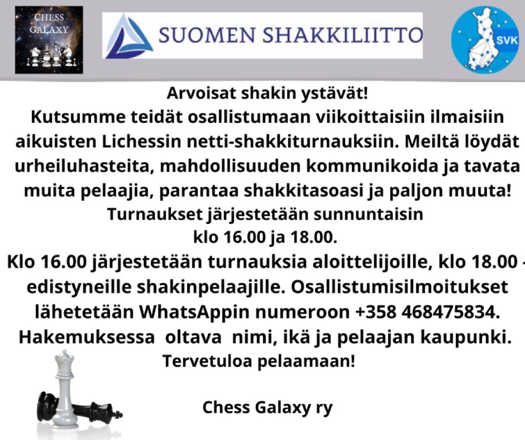 Kutsu Chess Galaxyn nettiturnauksiin