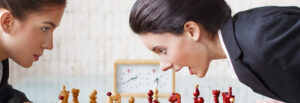 Young women playing chess, tactics, queen gambit
